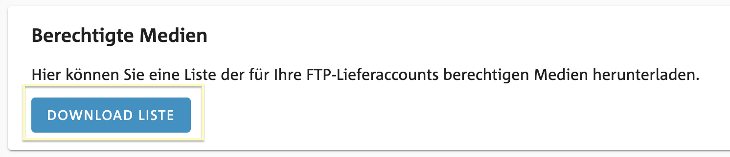 Mit Ihrem Nutzerkonto können Sie Daten für Ihrem Nutzerkonto zugeordnete Medien liefern. Eine Übersicht der berechtigten Medien können Sie als CSV-Datei herunterladen: